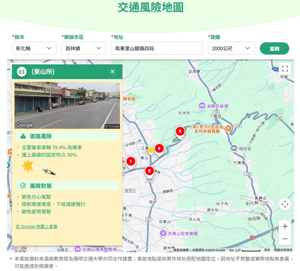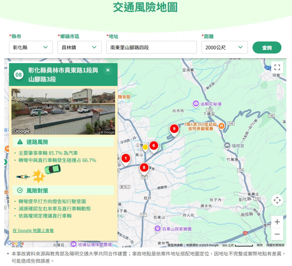 | 一、 | 透過產官學合作,結合損害防阻專業、交通事故數據資料庫及學術研究成果,協助校內師生及社區民眾即時掌握校園周邊事故熱點及風險預防對策。 |