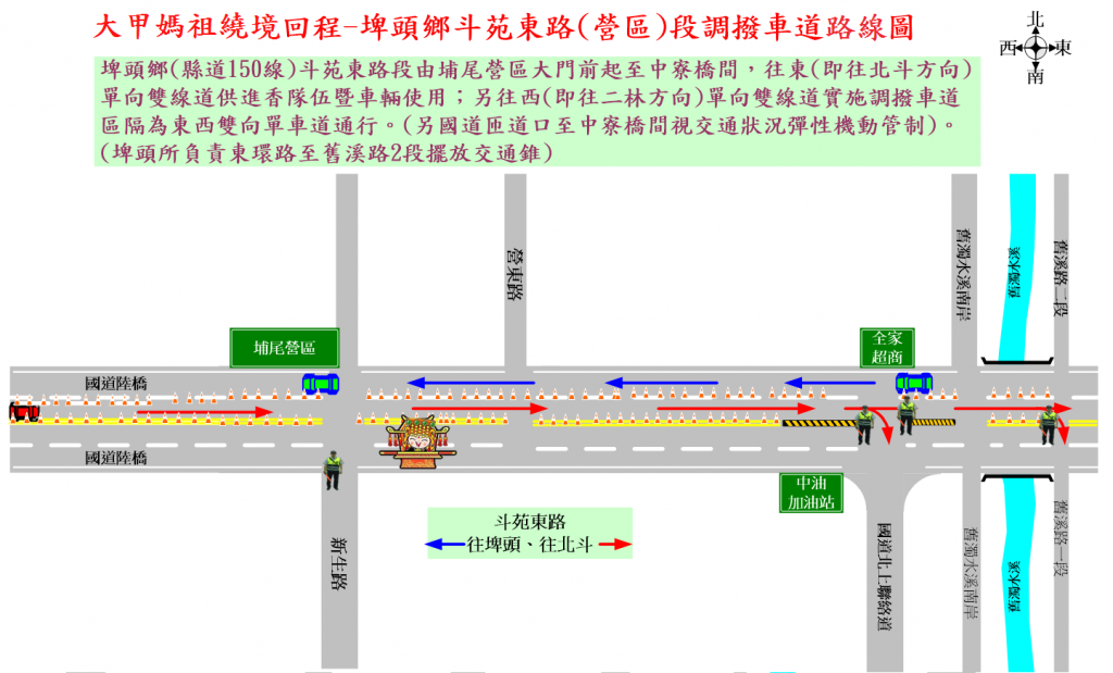 轉知:彰化縣警察局北斗分局為維護115年4月23、24日「大甲鎮瀾宮天上聖母遶境進香活動」行經期間交通秩序,將視交通狀況彈性管制車輛